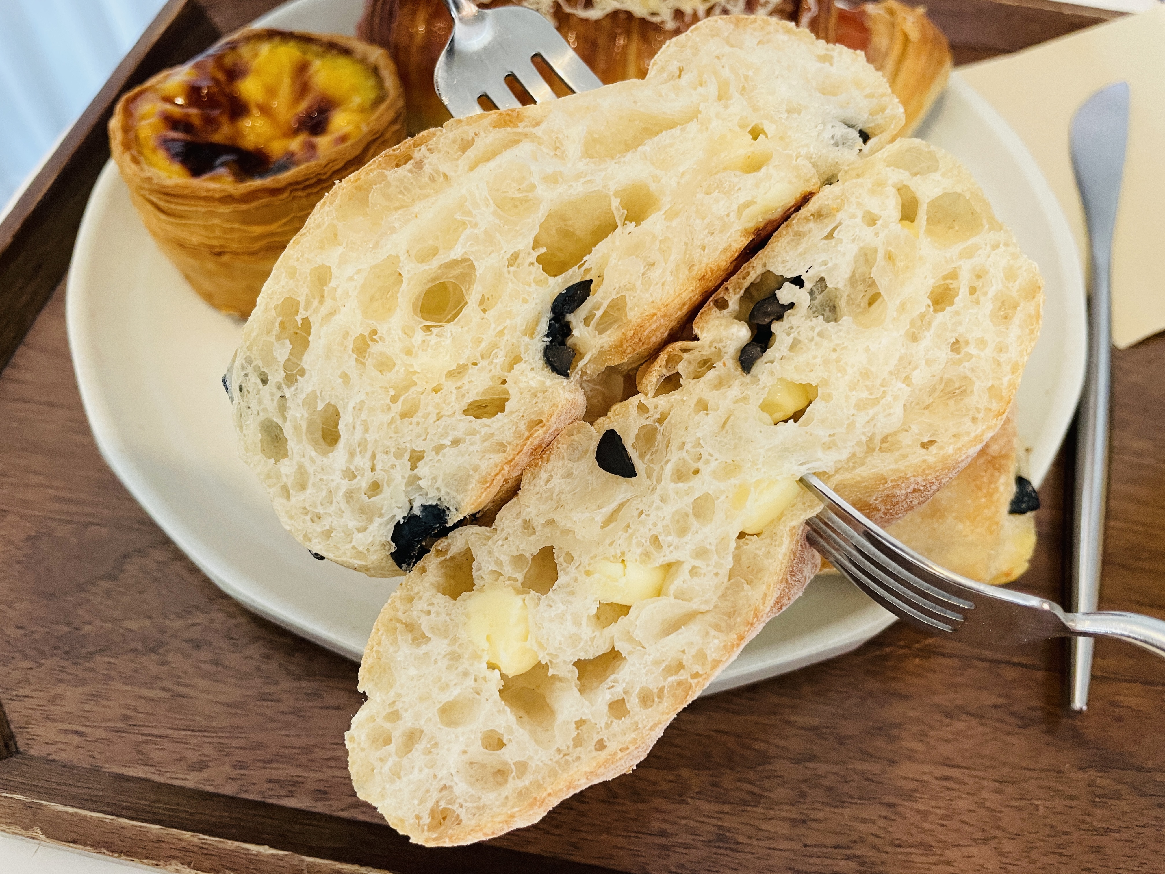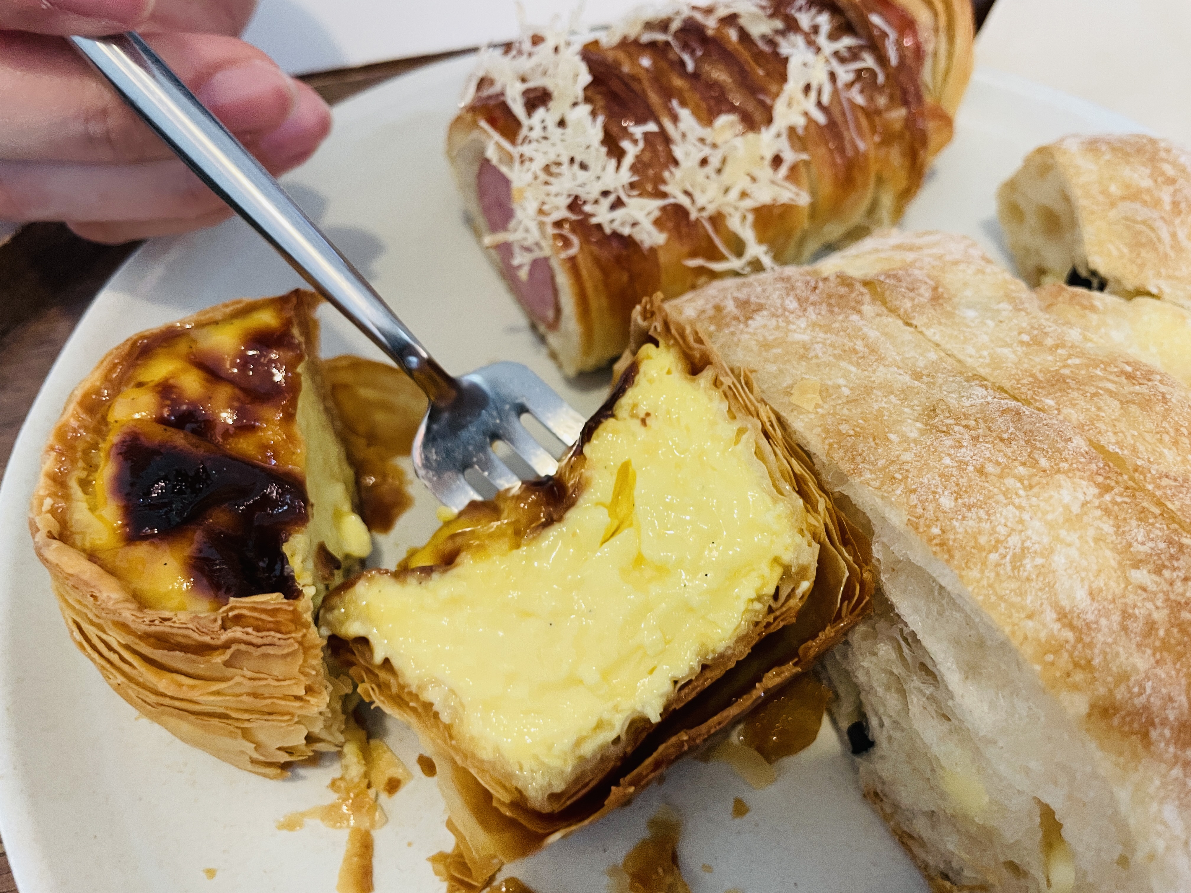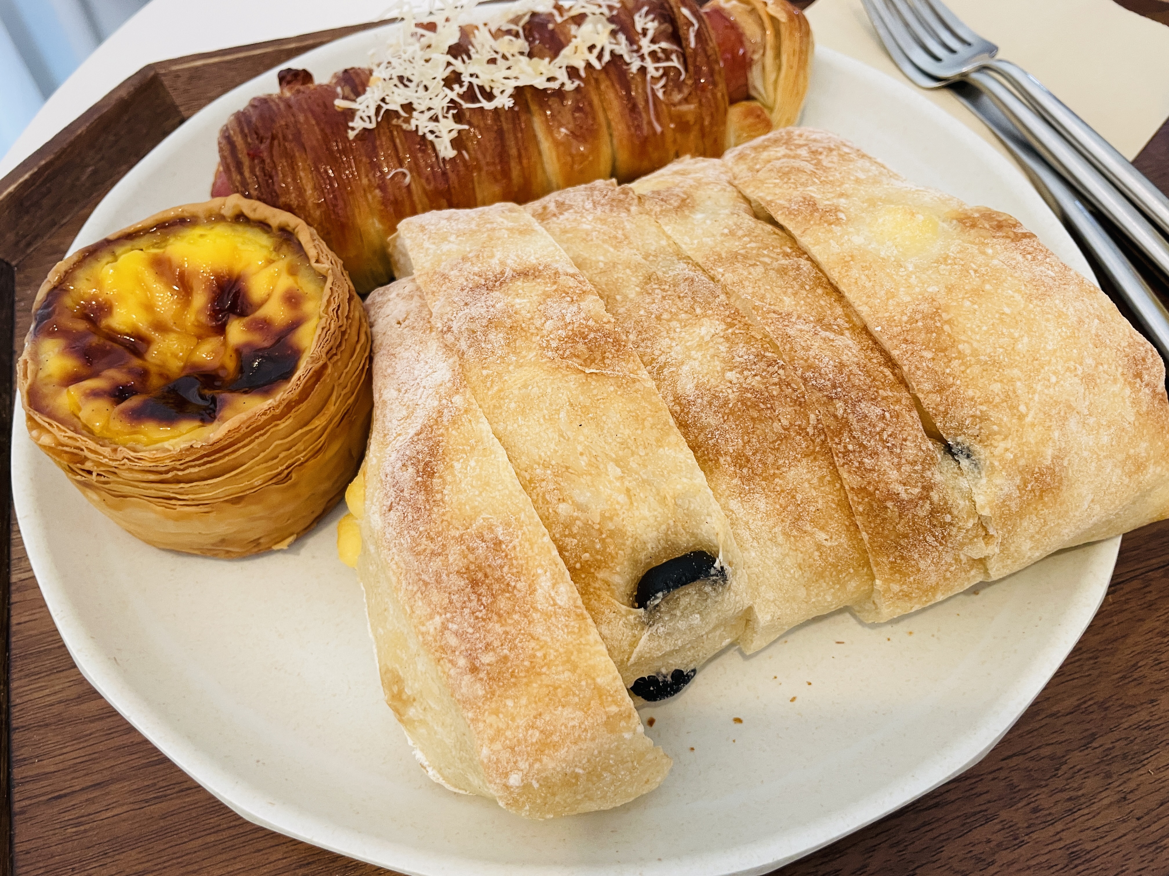 저는 올리브 치아바타, 소시지 페스츄리, 에그타르트