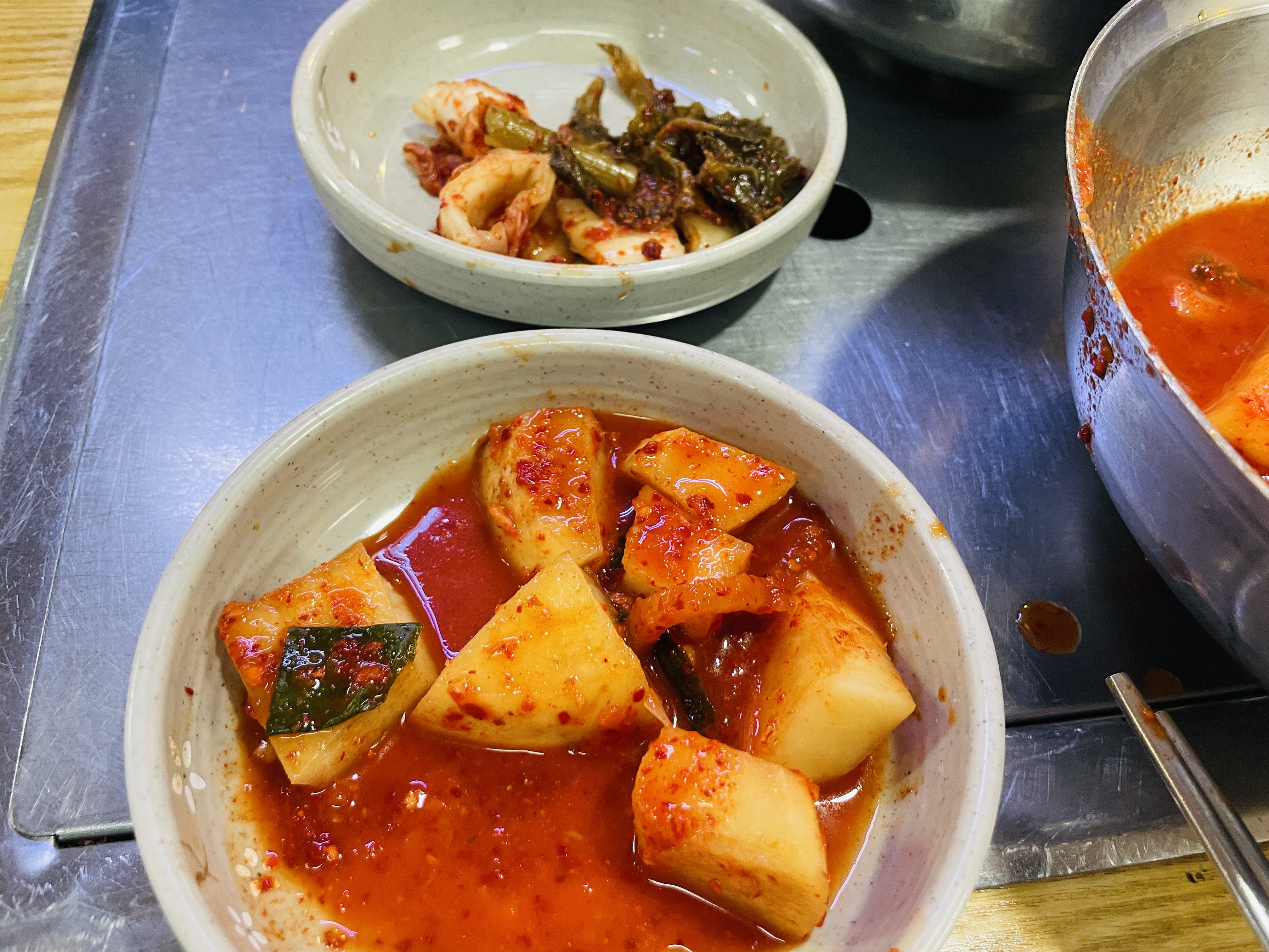 여기는 밑반찬으로 김치 삼종이 나옵니다