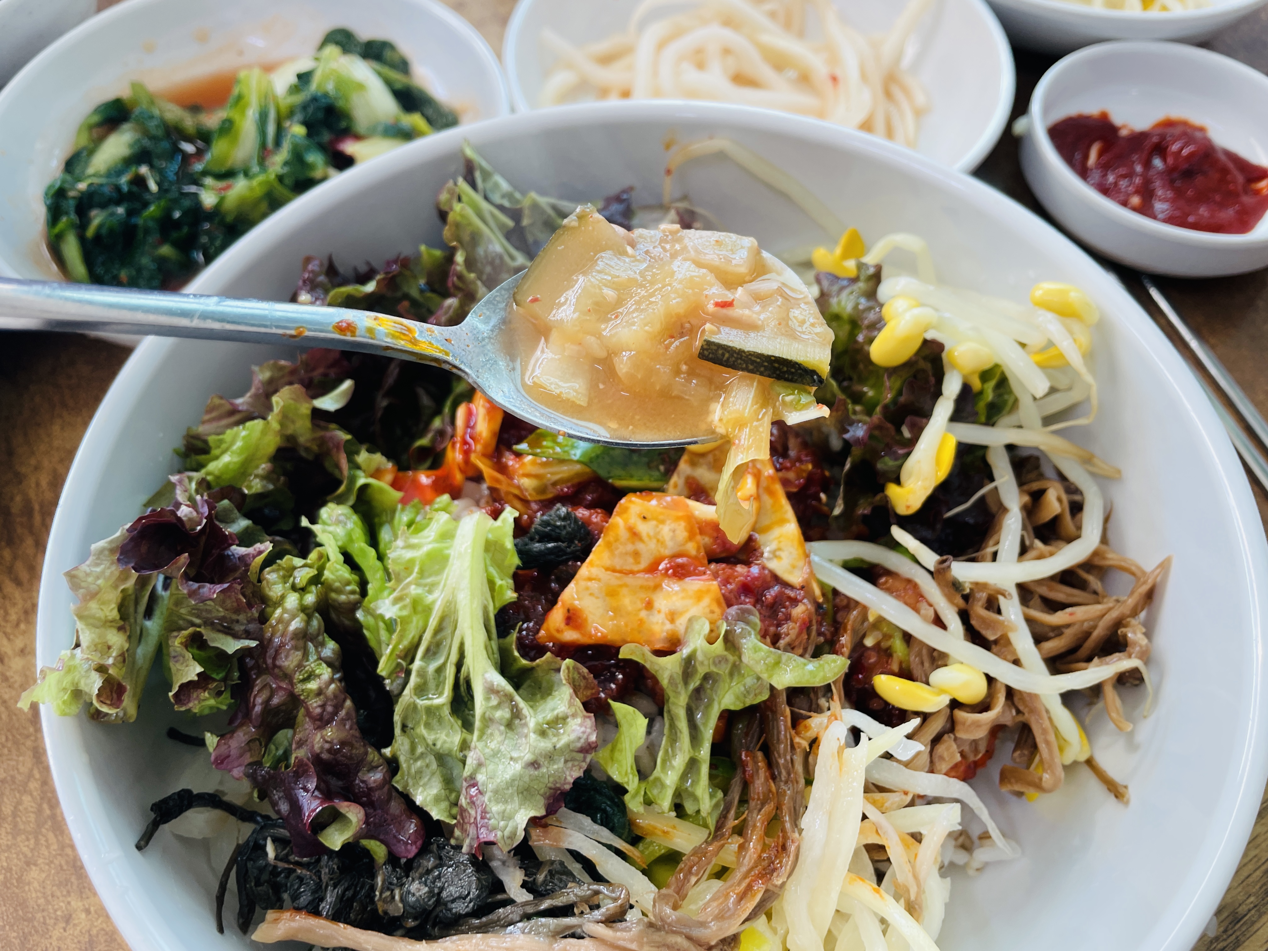 아삭한 상추와 콩나물은 식감을 풍성하게 해 주었네요.