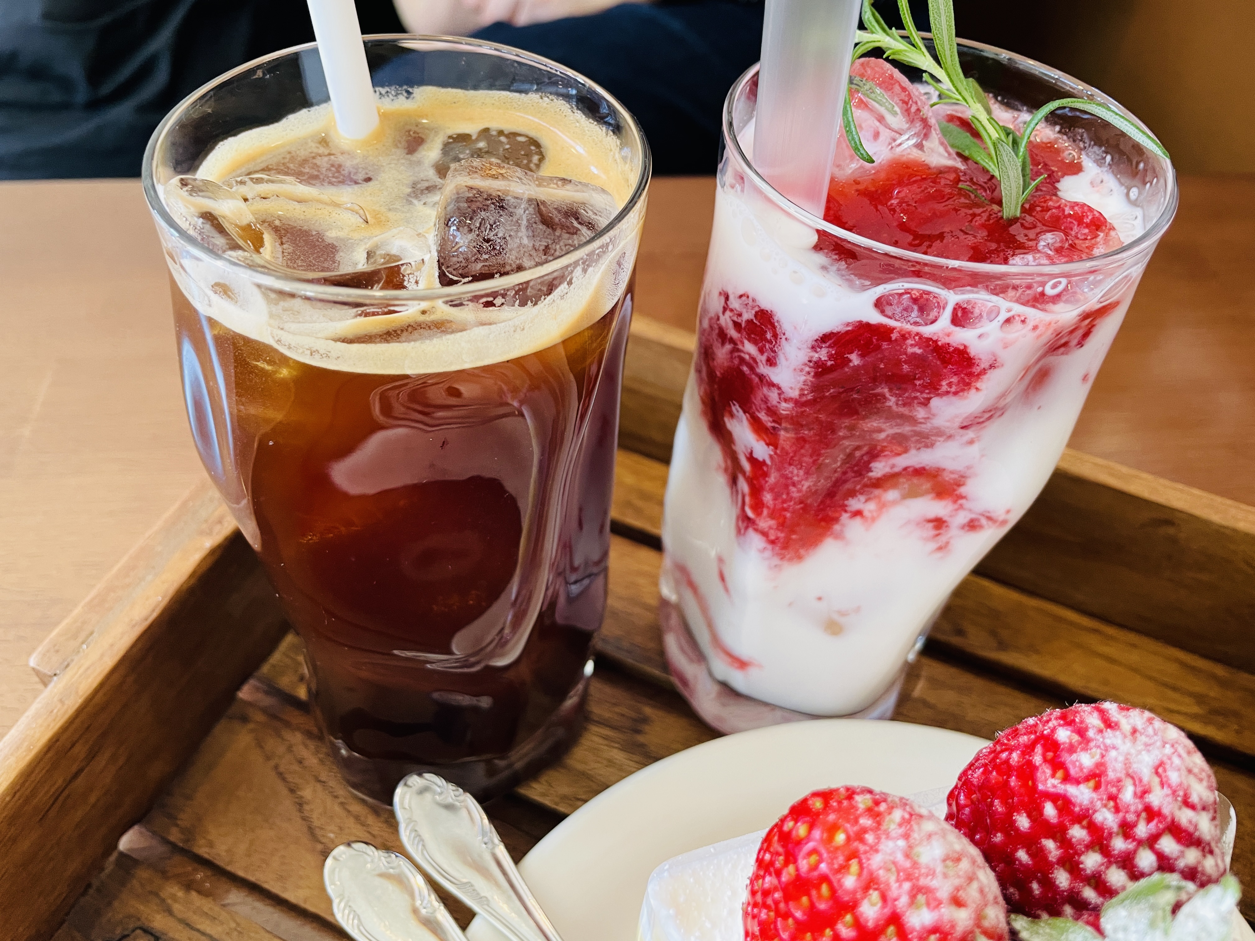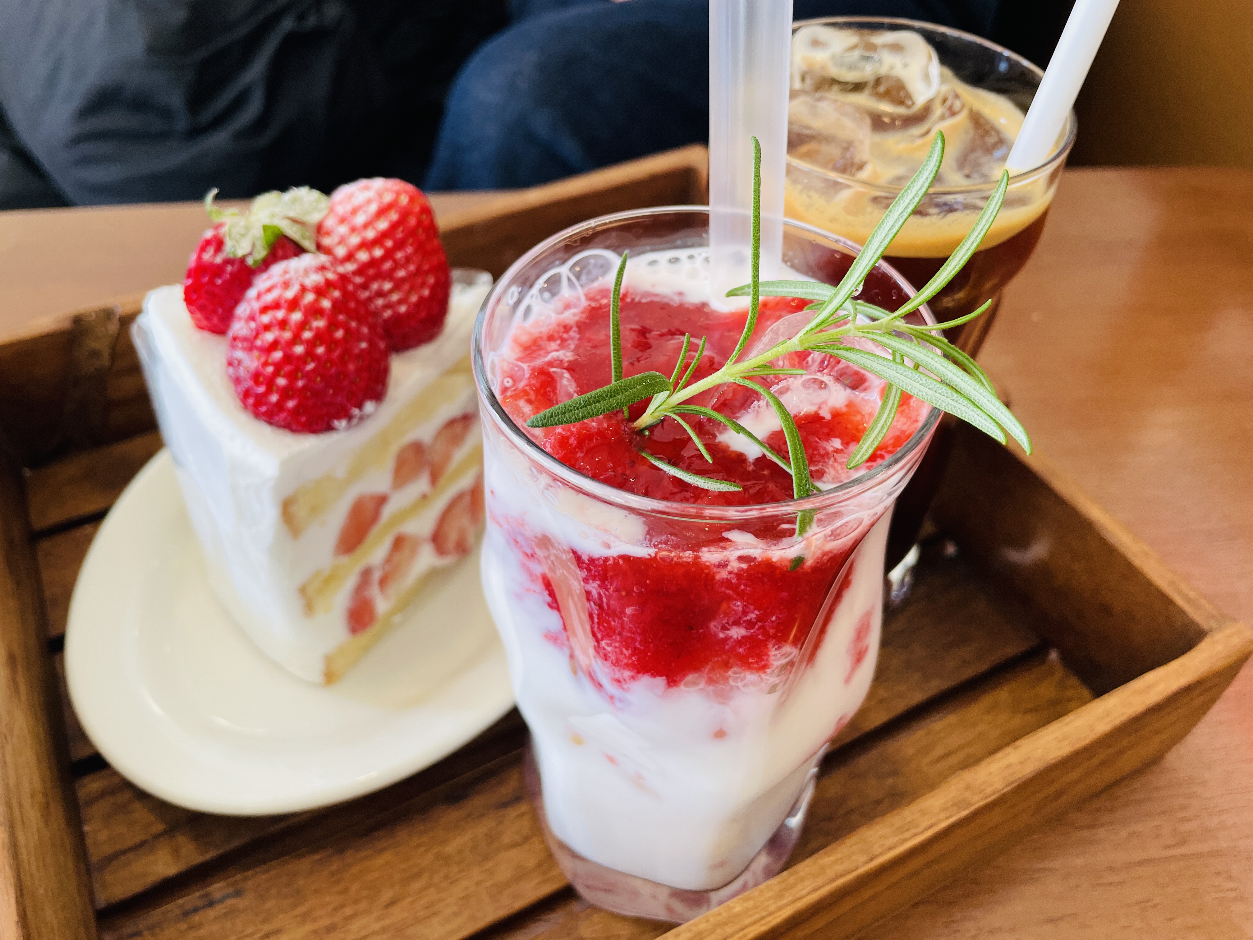 딸기가 제철이니 딸기생크림케이크와 딸기라떼 그리고 케이크와 궁합이 좋은 아아를 추가로 주문해봤어요